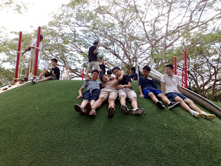 yeshh aft the funfunfun flying fox we went to get our bags to prepare to moved to the chalet!! but on the way, guess what we saw at the top of the pyramid? JARED WAS SLEEPING THERE. HAHAHAAAA. joker manxx. then had to call him dunno how many times then he went to thrwo a bottle down-__-" yeayea so aft that we trudged to the chalet!! kope somemore pics from huzi.
